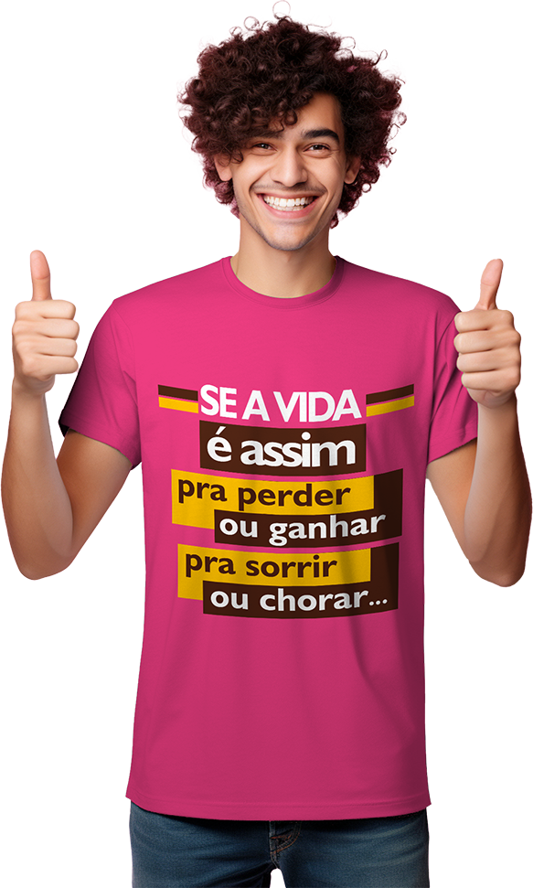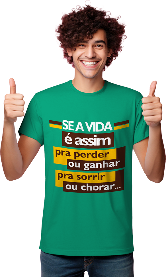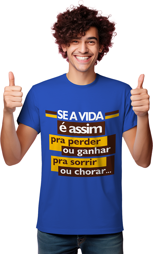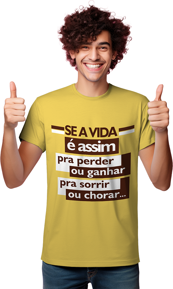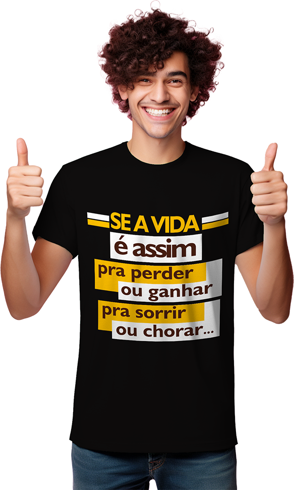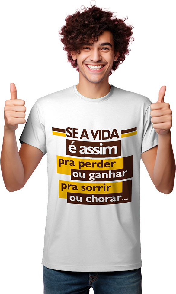 Camisa personalizada com a letra da música “Perder ou Ganhar” do grupo Sindicato do Samba, em malha macia e confortável, feita com 100% algodão.